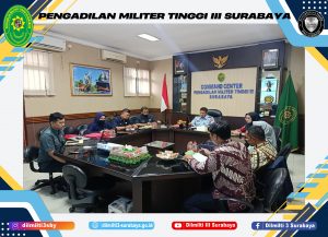 Sekretaris Pengadilan Militer Tinggi III Surabaya Kolonel Pom Djati Santoso, S.H., M.H., serta seluruh Tim PIPK ( Penilaian Intern atas Pelaporan Keuangan ) Pengadilan Militer Tinggi III Surabaya Menerima Kunjungan dari Badan Urusan Administrasi Mahkmaha Agung Republik Indonesia dalam rangka tertib administrasi Pelaksanaan Anggaran Pendapatan dan Belanja Negara Tahun Anggaran 2025. bertempat di Ruang Tirta