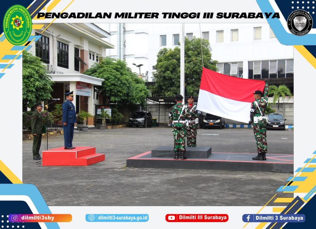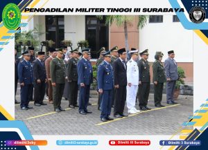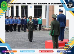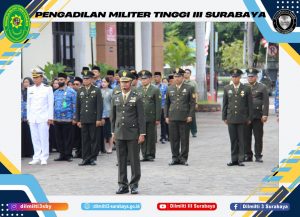 Hakim Militer Tinggi Pengadilan Militer Tinggi III Surabaya Kolonel Kum Mustofa, S.H., M.H., Selaku Inspektur Upacara memimpin Kegiatan Upacara dalam Rangka Memperingati Hari Sumpah Pemuda yang ke – 97 yang dilaksanakan di Halaman Depan Pengadilan Militer Tinggi III Surabaya